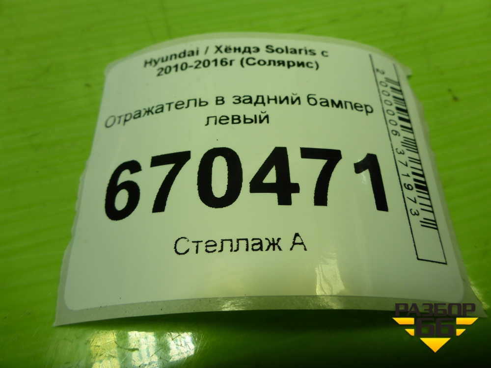 Отражатель в задний бампер левый (924051R200) для Hyundai Solaris с 2010-2016г (Солярис) в Краснодаре