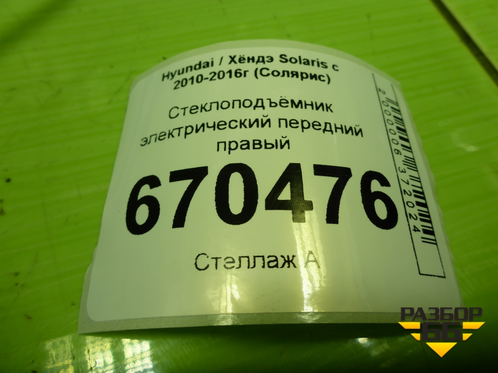 Стеклоподъёмник электрический передний правый для Hyundai Solaris с 2010-2016г (Солярис) в Краснодаре