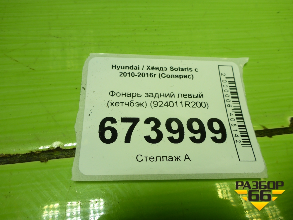 Фонарь задний левый (хетчбэк) (924011R200) для Hyundai Solaris с 2010-2016г (Солярис) в Краснодаре