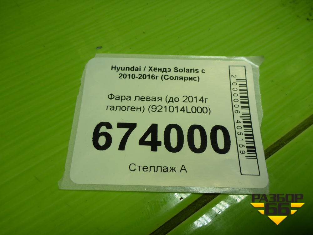 Фара левая (до 2014г галоген) (921014L000) для Hyundai Solaris с 2010-2016г (Солярис) в Краснодаре