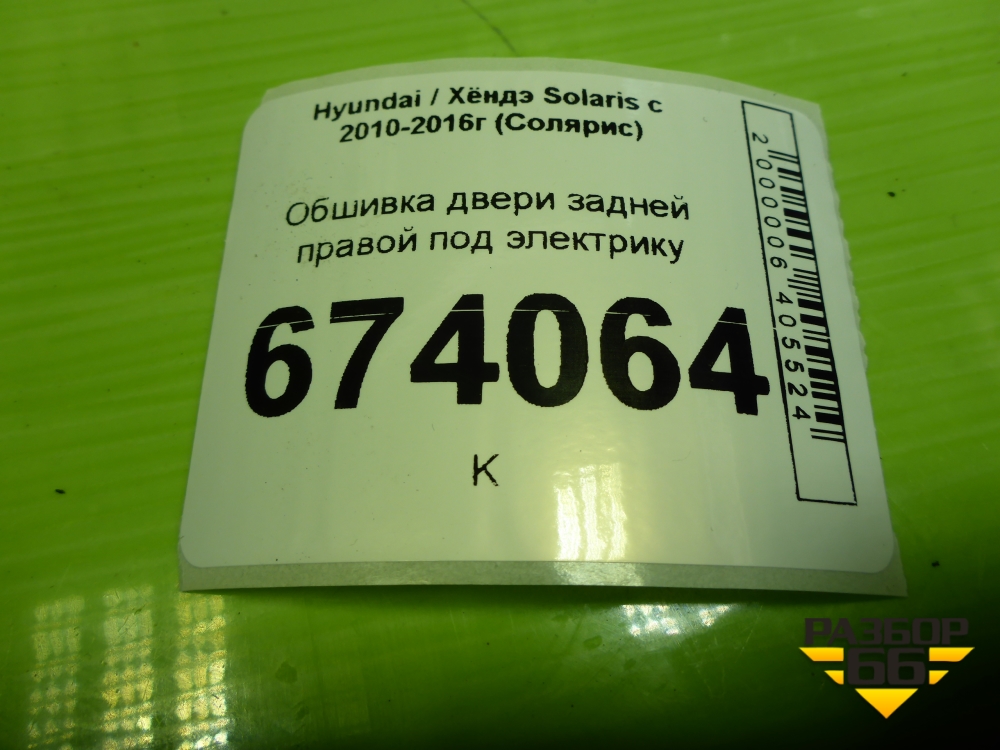 Обшивка двери задней правой под электрику (833604L010) для Hyundai Solaris с 2010-2016г (Солярис) в Краснодаре