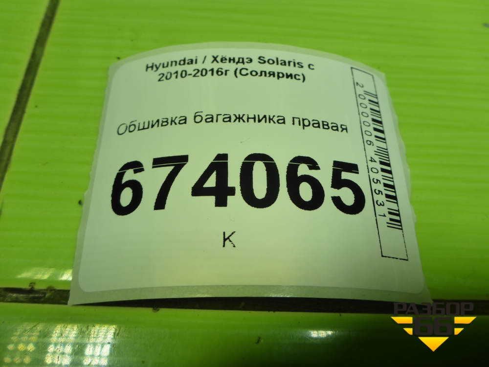 Обшивка багажника правая (хетчбэк) (857404L500) для Hyundai Solaris с 2010-2016г (Солярис) в Краснодаре