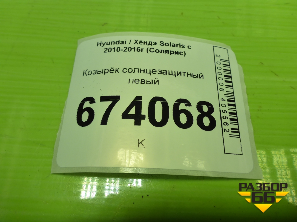 Козырёк солнцезащитный левый для Hyundai Solaris с 2010-2016г (Солярис) в Краснодаре