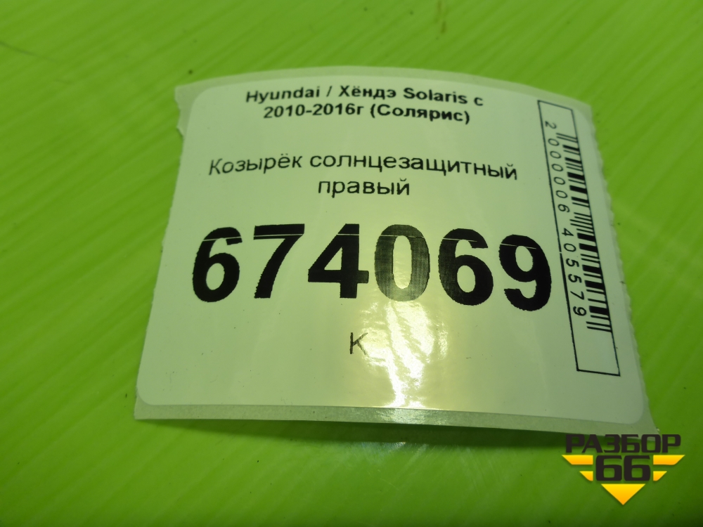 Козырёк солнцезащитный правый для Hyundai Solaris с 2010-2016г (Солярис) в Краснодаре