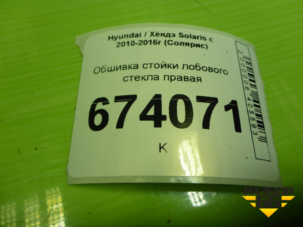 Обшивка стойки лобового стекла правая (858201R000) для Hyundai Solaris с 2010-2016г (Солярис) в Краснодаре