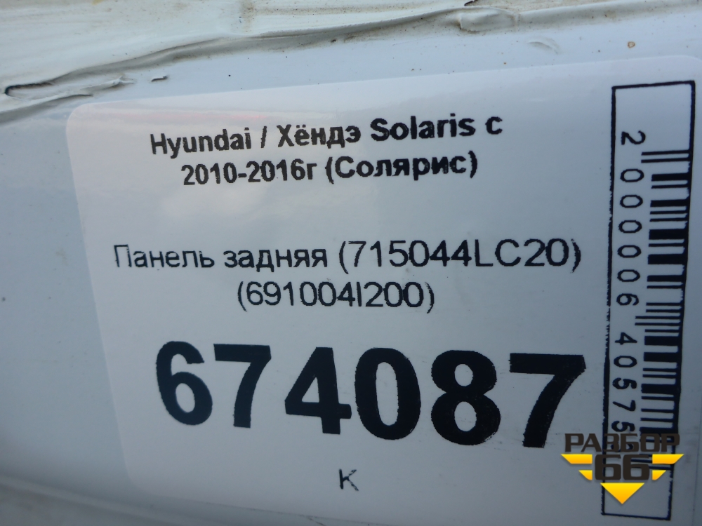 Панель задняя (хетчбэк) (691004L200) для Hyundai Solaris с 2010-2016г (Солярис) в Краснодаре
