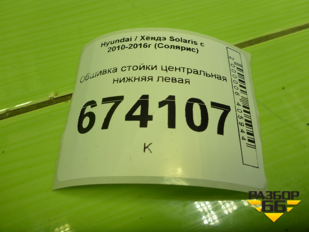 Обшивка стойки центральная нижняя левая (858351R000) для Hyundai Solaris с 2010-2016г (Солярис) в Краснодаре