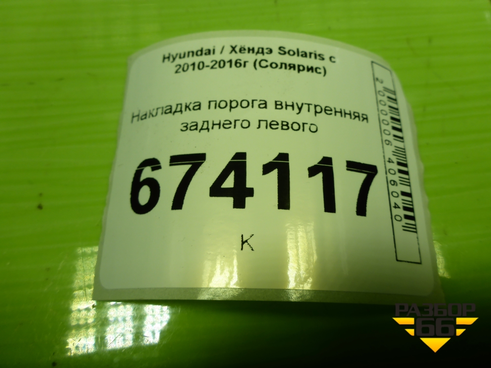 Накладка порога внутренняя заднего левого (858761R000) для Hyundai Solaris с 2010-2016г (Солярис) в Краснодаре