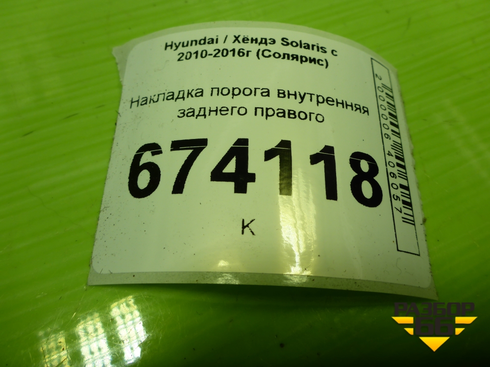 Накладка порога внутренняя заднего правого (858861R000) для Hyundai Solaris с 2010-2016г (Солярис) в Краснодаре