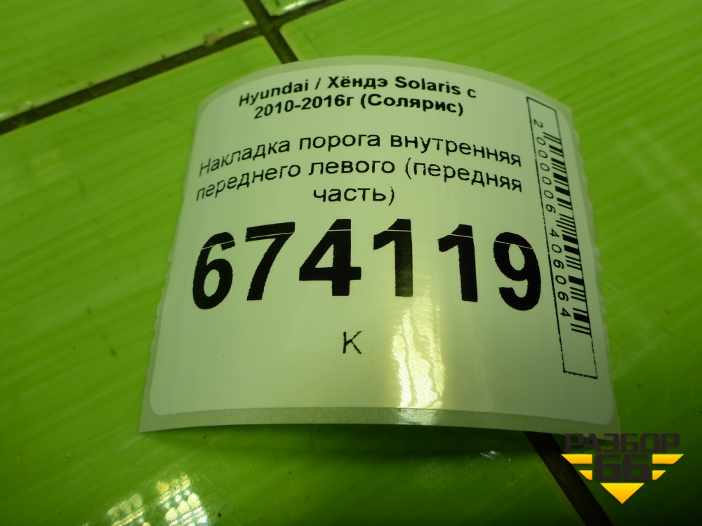 Накладка порога внутренняя переднего левого (передняя часть) (858231R000) для Hyundai Solaris с 2010-2016г (Солярис) в Краснодаре