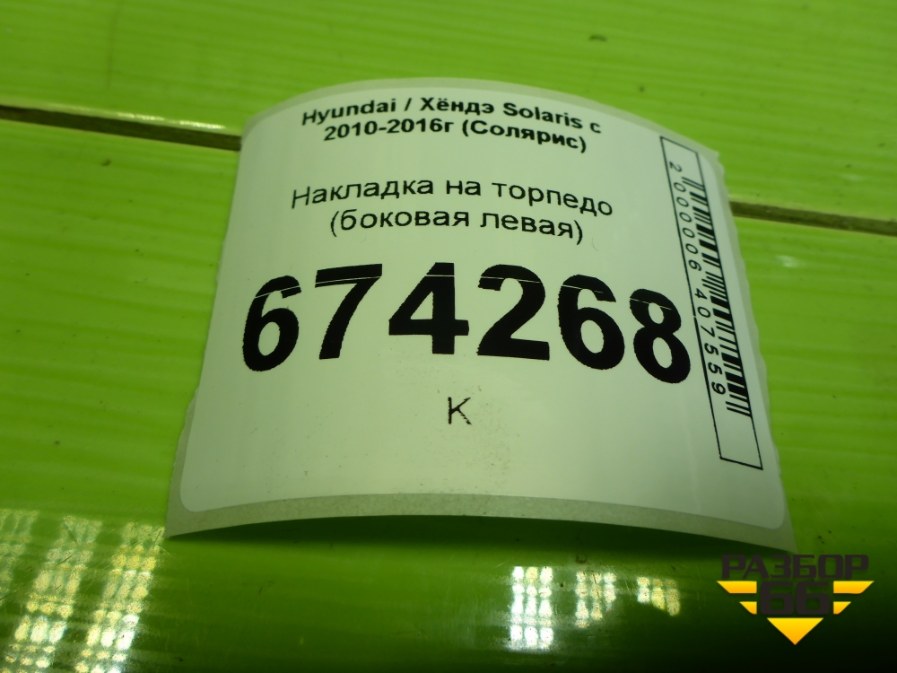 Накладка на торпедо (боковая левая) (847654L000) для Hyundai Solaris с 2010-2016г (Солярис) в Краснодаре
