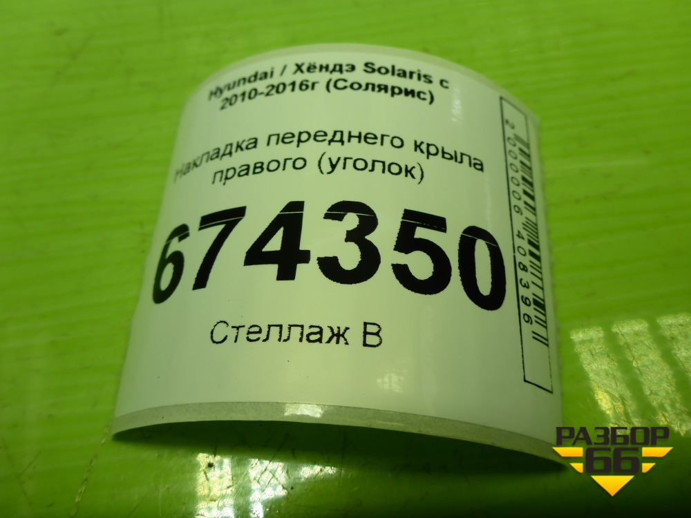Накладка переднего крыла правого (уголок) (861901R000) для Hyundai Solaris с 2010-2016г (Солярис) в Краснодаре