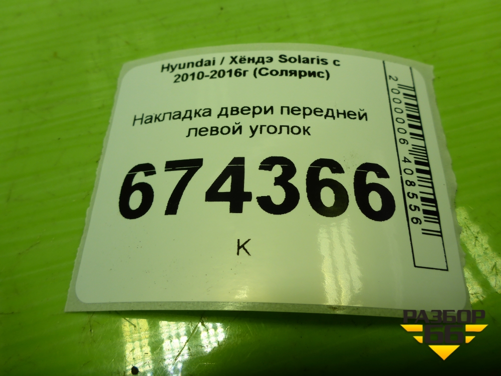 Накладка двери передней левой уголок (876501R010) для Hyundai Solaris с 2010-2016г (Солярис) в Краснодаре