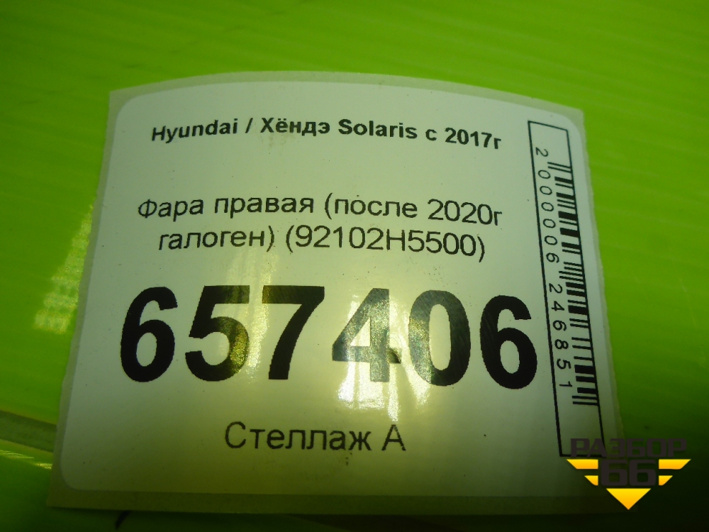 Фара правая (после 2020г галоген) (92102H5500) для Hyundai Solaris с 2017г (Солярис) в Краснодаре