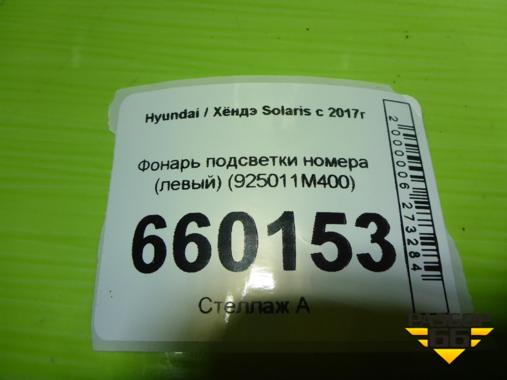 Фонарь подсветки номера (левый) (925011M400) для Hyundai Solaris с 2017г (Солярис) в Краснодаре