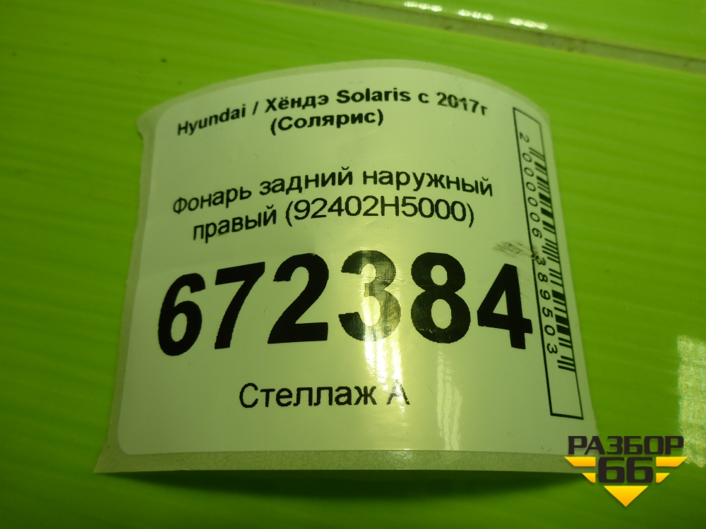 Фонарь задний наружный правый (92402H5000) для Hyundai Solaris с 2017г (Солярис) в Краснодаре
