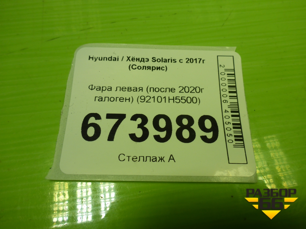 Фара левая (после 2020г галоген) (92101H5500) для Hyundai Solaris с 2017г (Солярис) в Краснодаре
