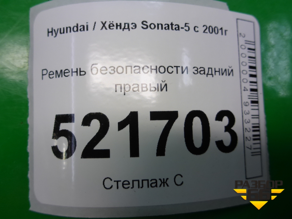 Ремень безопасности задний правый для Hyundai Sonata-5 с 2001г (Соната) в Краснодаре
