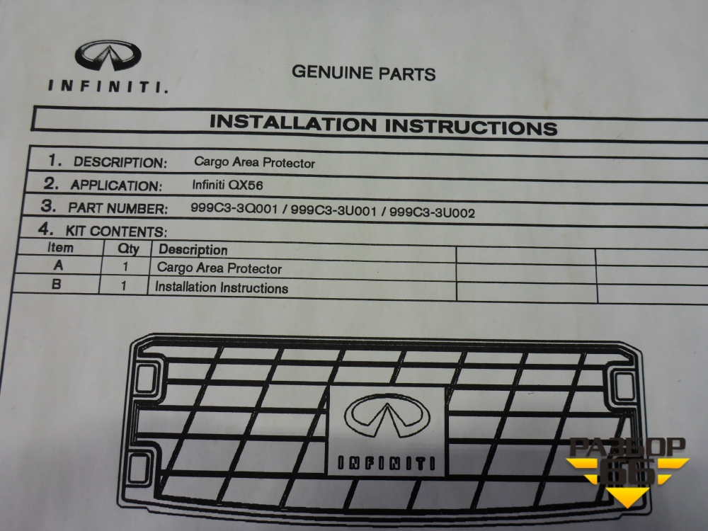 Коврик в багажник (новый) (999C33Q001) для Infiniti Infiniti QX56 с 2004-2009г (Ку икс56) в Краснодаре