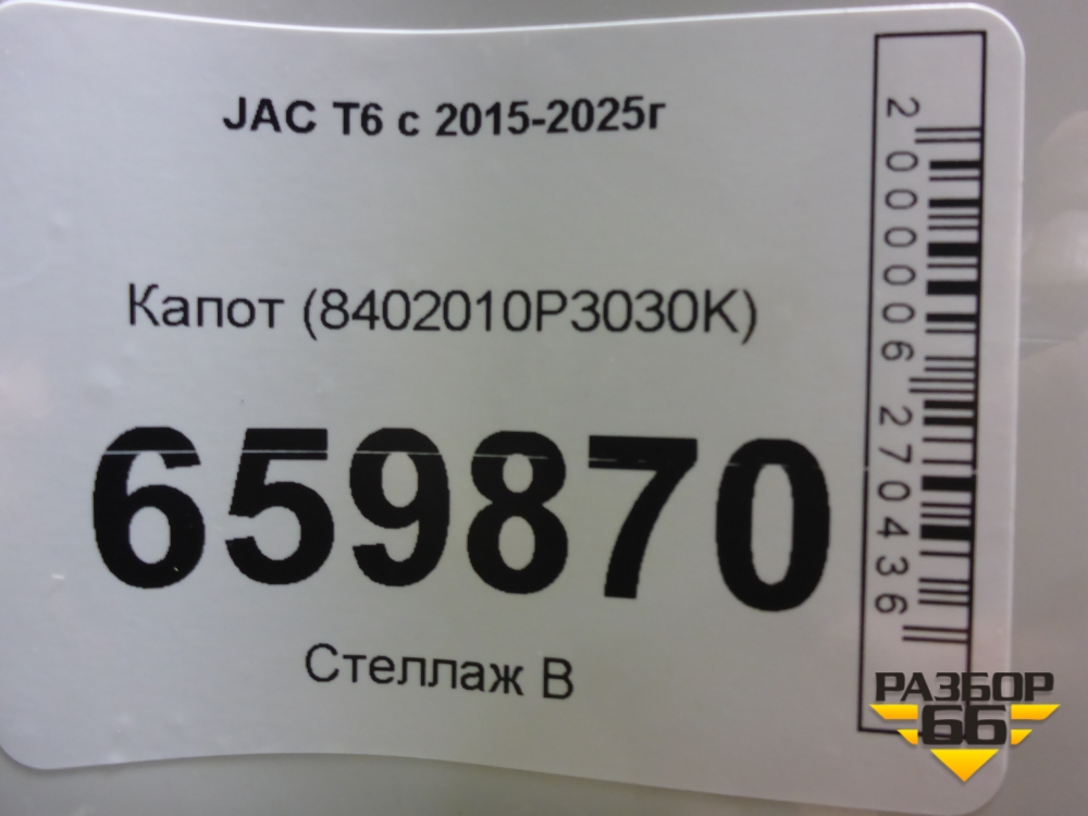 Капот (8402010P3030K) для JAC T6 с 2015-2025г (Т6) в Краснодаре