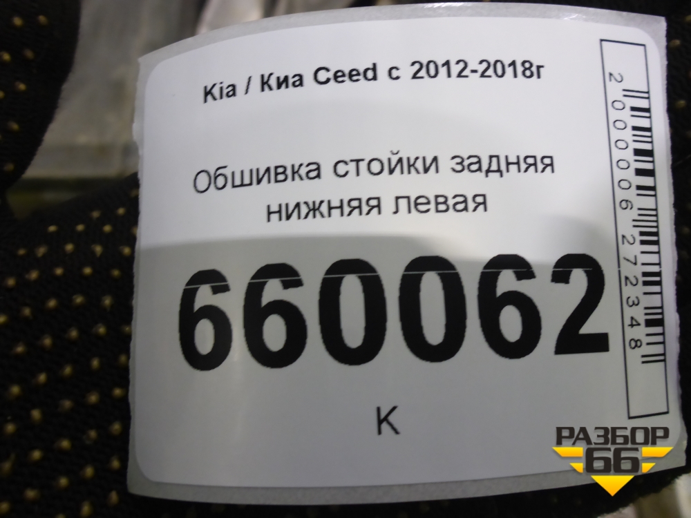Обшивка стойки задняя нижняя левая (5-ти дверный хетчбэк) (85890A2010) для Kia Ceed с 2012-2018г (Сид 2) в Краснодаре