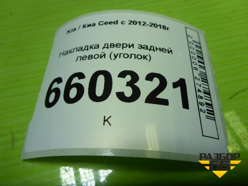 Накладка двери задней левой (уголок) (83911A2000) для Kia Ceed с 2012-2018г (Сид 2) в Краснодаре