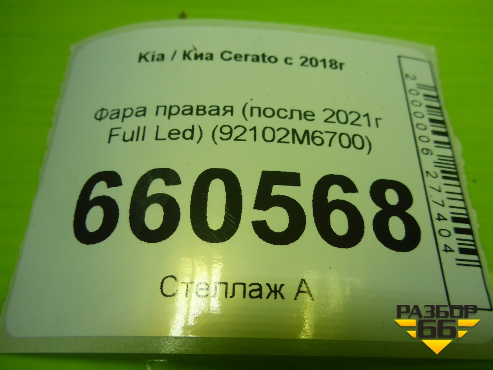 Фара правая (после 2021г Full Led) (92102M6700) для Kia Cerato с 2018г (Серато3) в Краснодаре