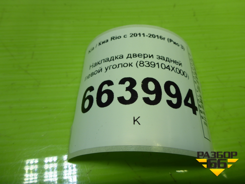 Накладка двери задней левой уголок (839104X000) для Kia Rio с 2011-2016г (Рио 3) в Краснодаре