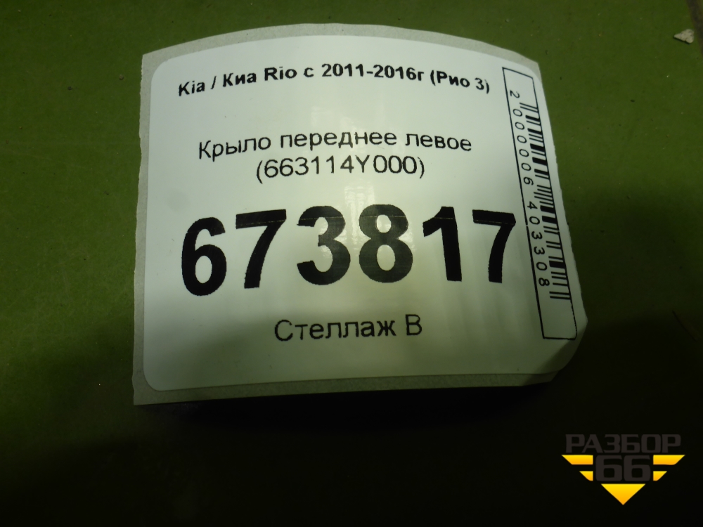 Крыло переднее левое (663114Y000) для Kia Rio с 2011-2016г (Рио 3) в Краснодаре