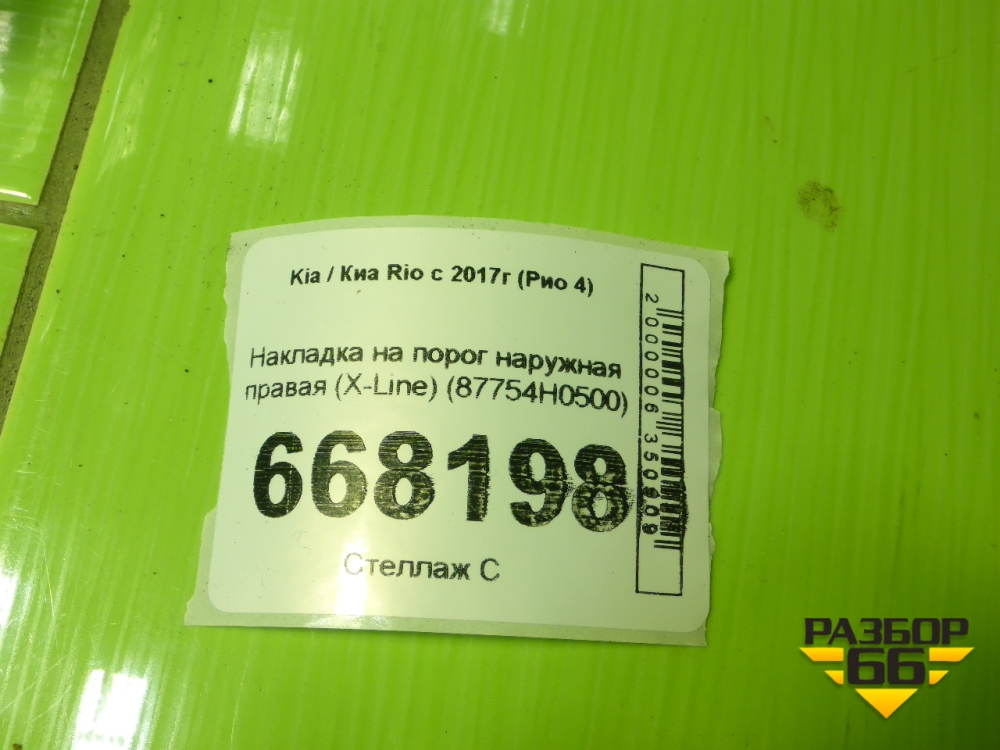 Накладка на порог наружная правая (X-Line) (87754H0500) для Kia Rio с 2017г (Рио 4) в Краснодаре