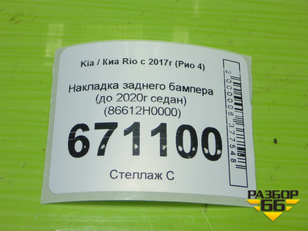 Накладка заднего бампера (до 2020г седан) (86612H0000) для Kia Rio с 2017г (Рио 4) в Краснодаре