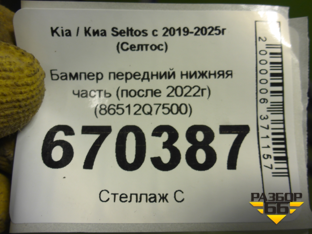 Бампер передний нижняя часть (после 2022г) (86512Q7500) для Kia Seltos с 2019-2025г (Селтос) в Краснодаре