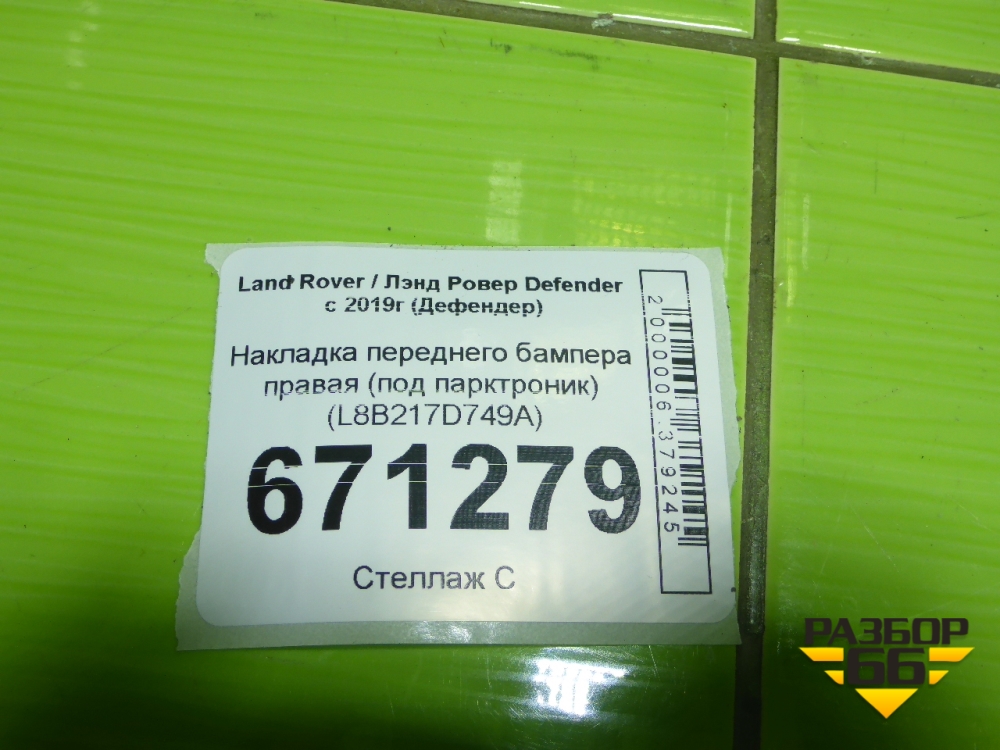 Накладка переднего бампера правая (под парктроник) (L8B217D749A) для Land Rover Defender с 2019г (Дефендер) в Краснодаре