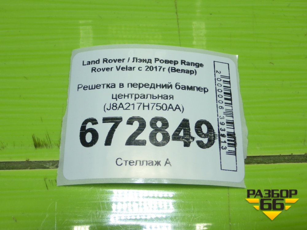 Решетка в передний бампер центральная (J8A217H750AA) для Land Rover Range Rover Velar с 2017г (Велар) в Краснодаре