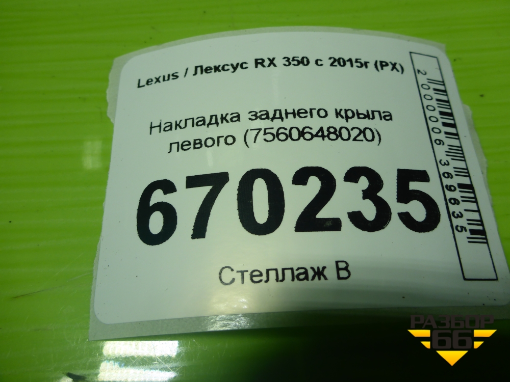 Накладка заднего крыла левого (7560648020) для Lexus RX 350 c 2015г (РХ) в Краснодаре