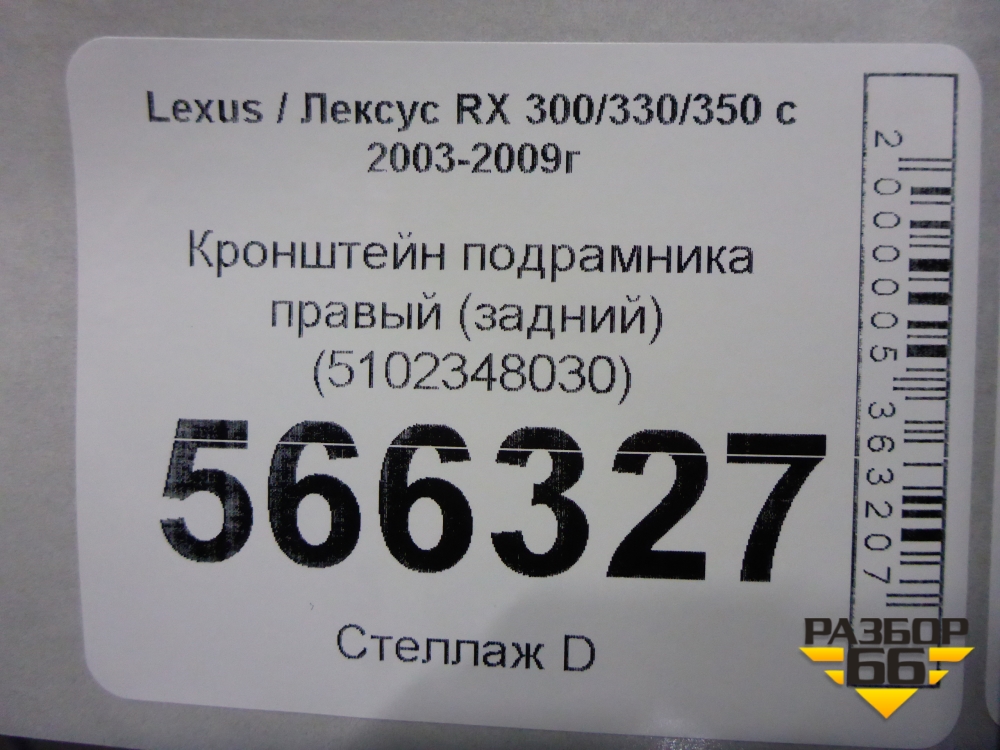 Кронштейн подрамника правый (задний) (5102348030) для Lexus RX 300/330/350 с 2003-2009г (РХ) в Краснодаре
