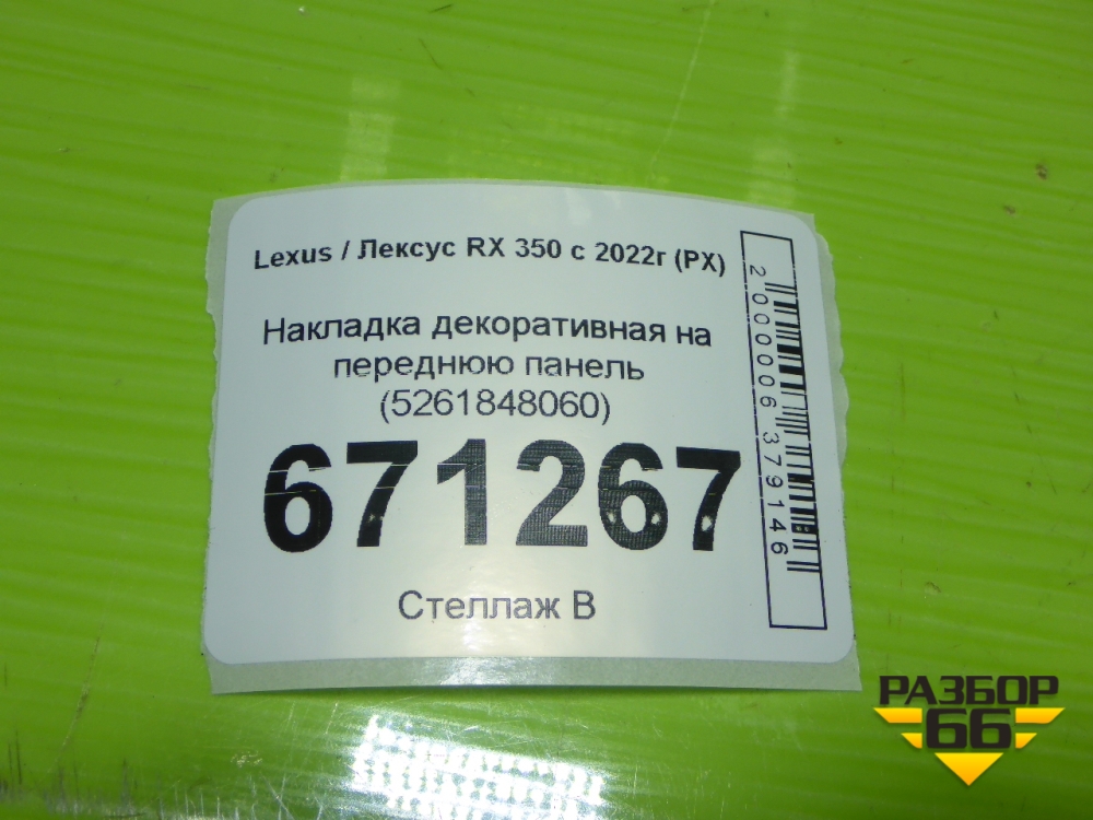 Накладка декоративная на переднюю панель (5261848060) для Lexus RX 350 с 2022г (РХ) в Краснодаре