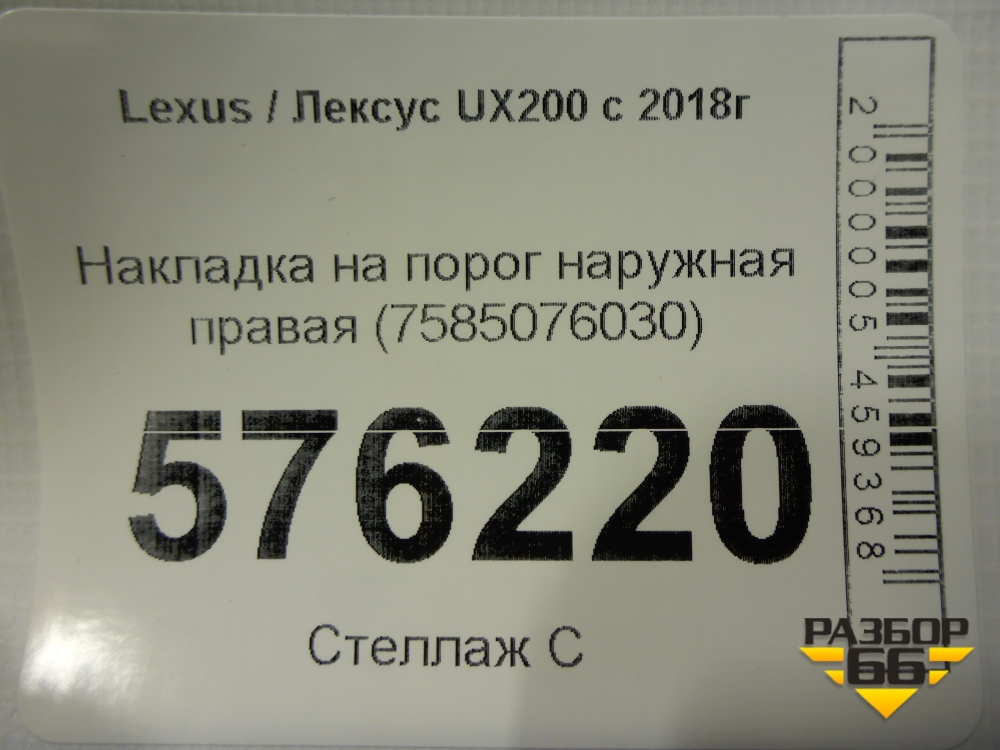 Накладка на порог наружная правая (7585076030) для Lexus UX200 с 2018г (УХ) в Краснодаре