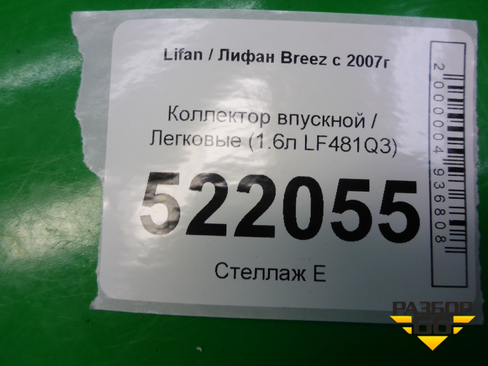 Коллектор впускной (1.6л LF481Q3) для Lifan Breez с 2007г (Бриз) в Краснодаре