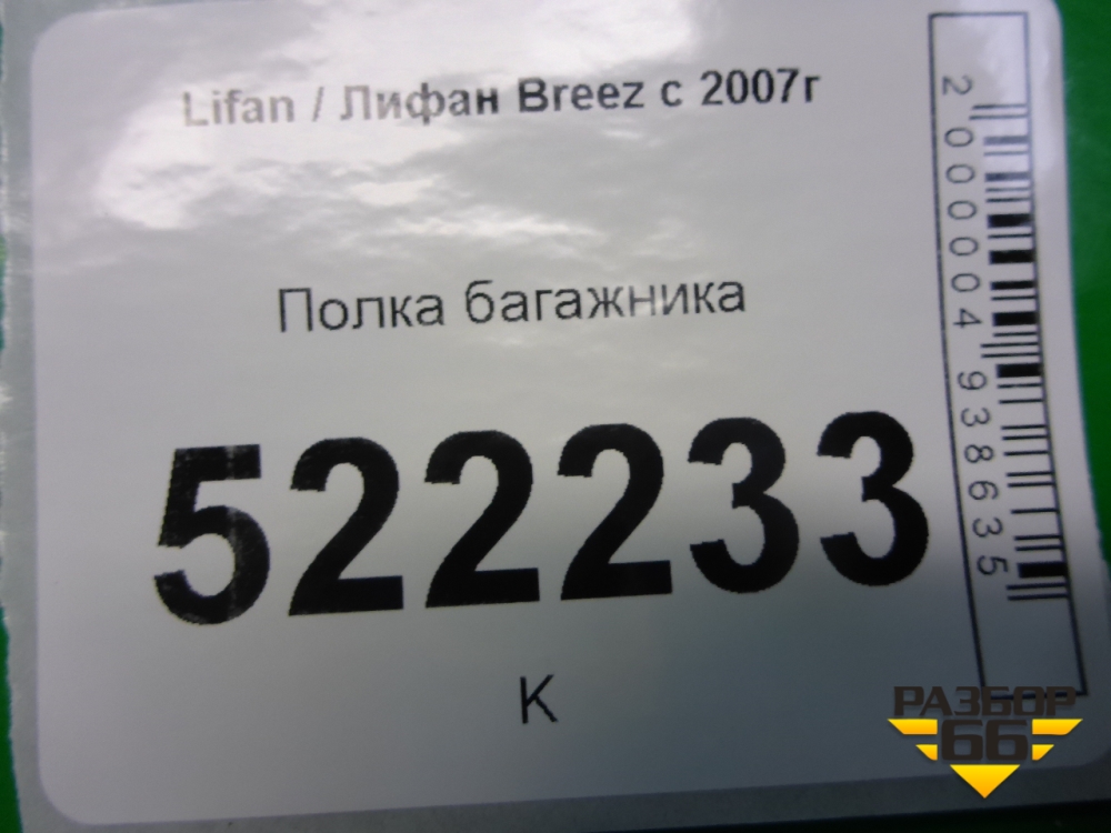 Полка багажника (седан) для Lifan Breez с 2007г (Бриз) в Краснодаре