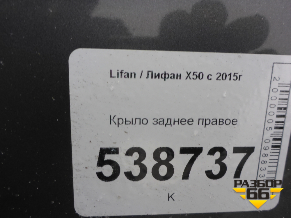 Крыло заднее правое для Lifan X50 с 2015г (Х50) в Краснодаре
