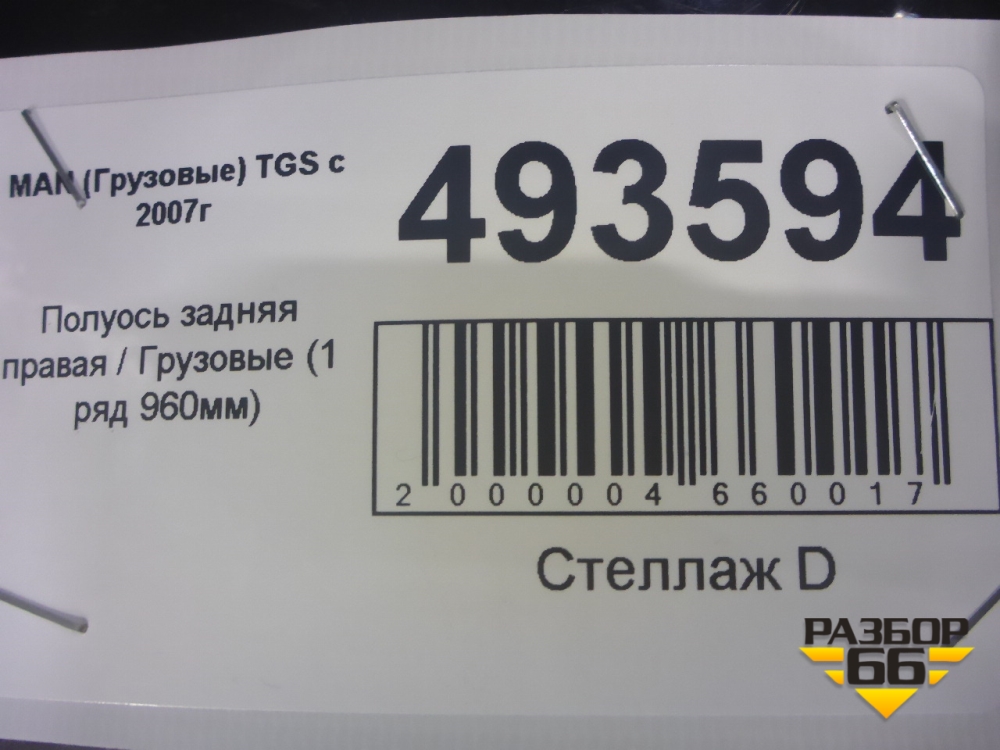 Полуось задняя правая (1 ряд 960мм) для MAN TGS с 2007г (ТГС) в Краснодаре