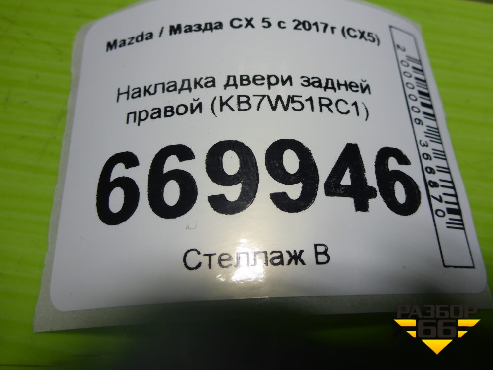 Накладка двери задней правой (KB7W51RC1) для Mazda CX 5 с 2017г (СХ5) в Краснодаре