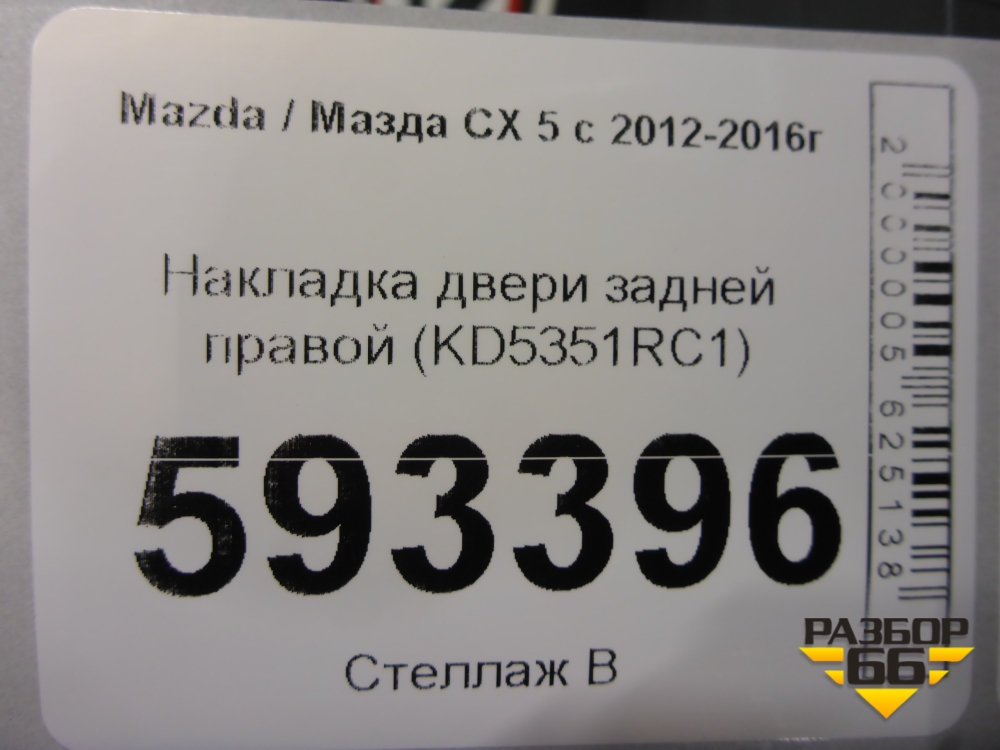 Накладка двери задней правой (KD5351RC1) для Mazda CX 5 с 2012-2016г (СХ5) в Краснодаре