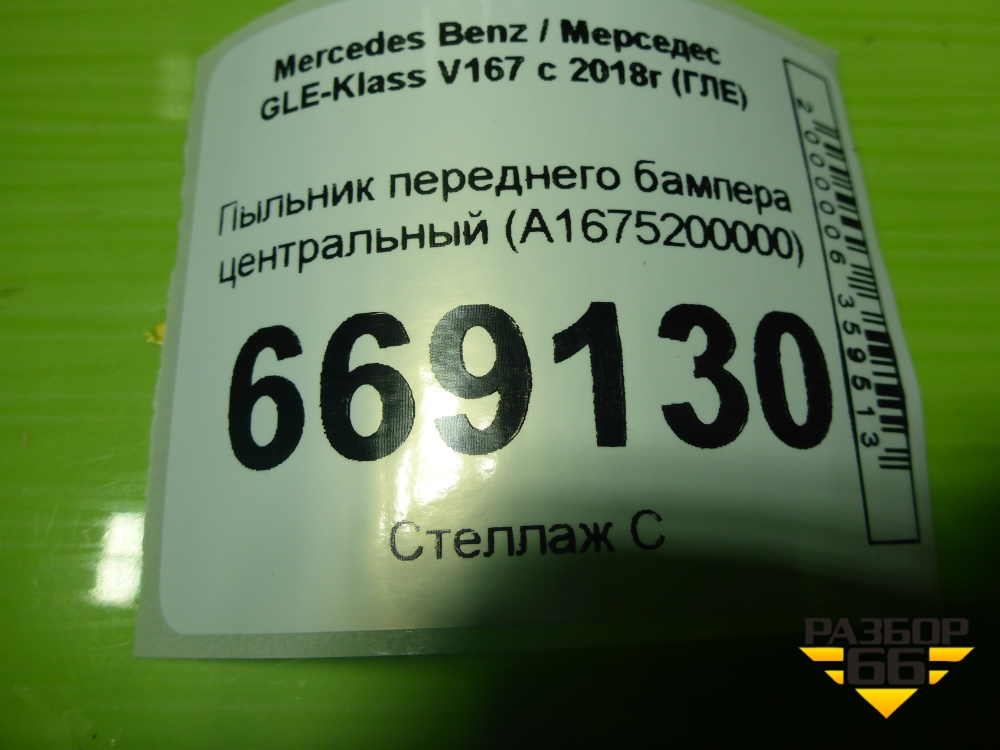 Пыльник переднего бампера центральный (A1675200000) для Mercedes Benz GLE-Klass V167 с 2018г (ГЛЕ) в Краснодаре