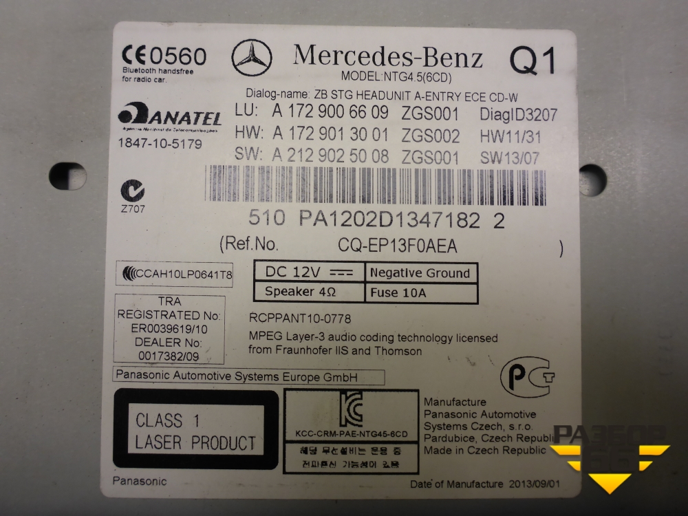 Магнитола (A1729006609) для Mercedes Benz SLK R172 с 2010-2016г (СЛК) в Краснодаре