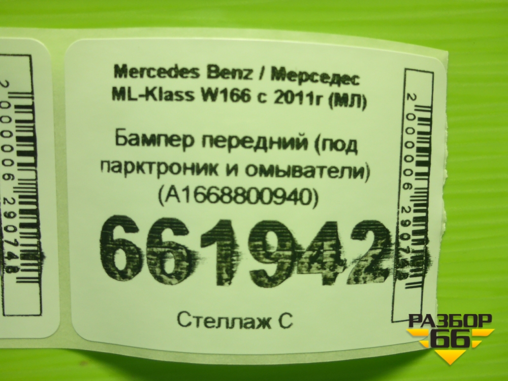 Бампер передний (под парктроник и омыватели) (A1668800940) для Mercedes Benz ML-Klass W166 c 2011г (МЛ) в Краснодаре
