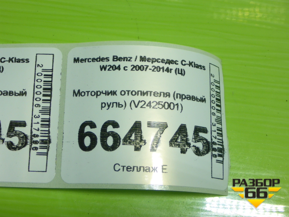 Моторчик отопителя (правый руль) (V2425001) для Mercedes Benz C-Klass W204 с 2007-2014г (Ц) в Краснодаре