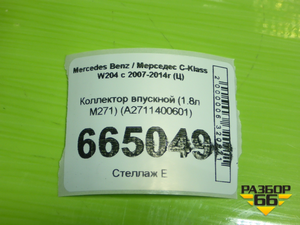 Коллектор впускной (1.8л M271) (A2711400601) для Mercedes Benz C-Klass W204 с 2007-2014г (Ц) в Краснодаре