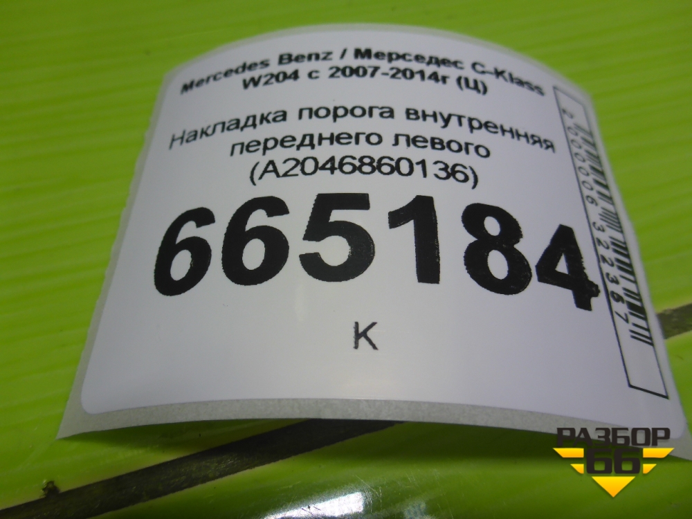 Накладка порога внутренняя переднего левого (A2046860136) для Mercedes Benz C-Klass W204 с 2007-2014г (Ц) в Краснодаре